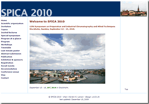 Webauftritt für International Symposium on Preparative and Industrial Chromatography and Allied Techniques, Stockholm, organisiert von Kerstin Larson, AstraZeneca, Pharmaceutical Development, R&D Supply Chain, Södertälje, Sweden.